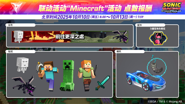 为纪念“Minecraft”DLC上线,《索尼克赛车 交叉世界》特别活动火热进行中。活动期间收集活动点数,特别的报酬等你来领。