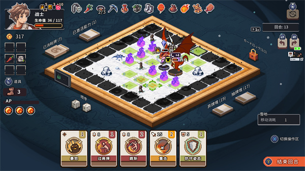 使用任何卡牌都会有相应的消耗行动力值,攻击、防御,还是进行任何能力上的升级都任由冒险家自己安排!如果无法在回合内把魔物击杀的话,不妨先配合魔物的行动进行防御也是一个选择。