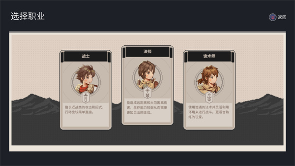 本作拥有各式各样的职业供你游玩:战士,法师,与诡术师。有些职业甚至有分支,其玩法更是不同。比如有的靠迭层增加伤害,有的需要先充能才能进行攻击和防御,有的需要把地形环境与陷阱转化为自己的武器。保证每一场冒险都不会单一,不同的职业会给予你崭新的游戏体验!