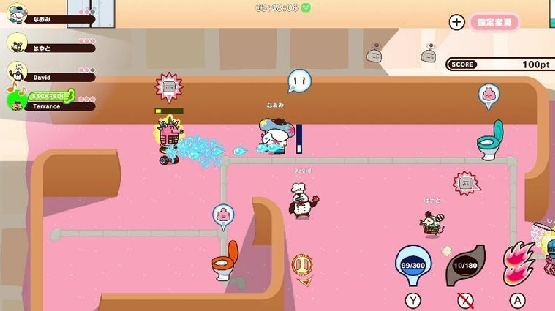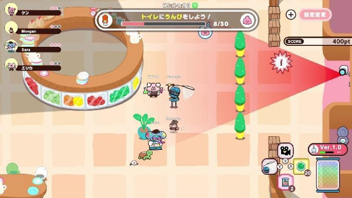 本作以“吃!睡!拉!”为主题,是一款世界首款(?)“排泄型逃脱动作派对游戏”。