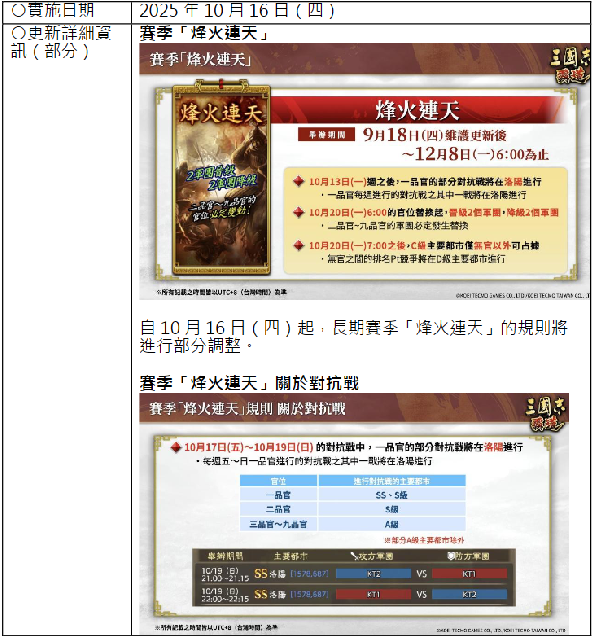 自10月16日(四)起,长期赛季「烽火连天」的规则将进行部分调整。