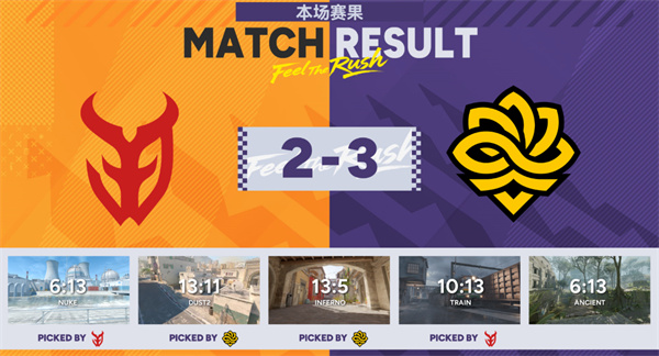 下半场(攻守互换,Legacy为T):Legacy谨慎控图拿下11 分;3DMAX 保长枪后追分,Maka 红楼梯三杀摧毁 Legacy 长枪局,将比分追至 10-12。最终Legacy 用 “四人绿通隐身+匪口配合”清空外场,以 13-10 拿下图四,拿到赛点。