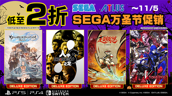 “SEGA万圣节促销”活动开跑!全场低至2折
