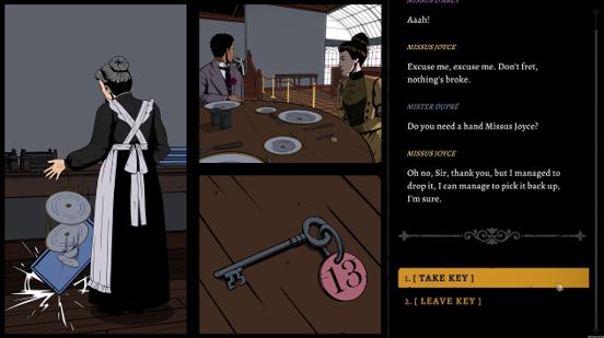 游戏背景设定在 19 世纪末的维多利亚时期爱尔兰,玩家将化身私家侦探 Declan Ward,受托前往 Blake Manor(布莱克庄园) 寻找失踪女子 Evelyn Deane。在追查真相的过程中,玩家需要采访并审问形形色色的可疑人物,通过他们的陈述与举止,发现隐藏的线索。记录细节、建立联系、交叉比对证据,是揭开布莱克庄园秘密、找出艾芙琳下落的关键。