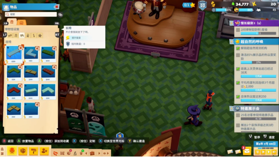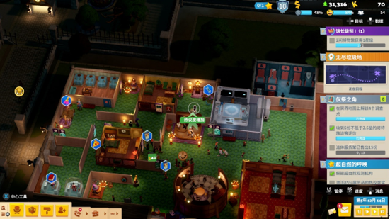 或许有的玩家看到丰富的游戏内容会有些感到望而止步,但本作其实更注重于“装修”,对于经营小白玩家而言可以不必太担心,游戏还推出了剧情模式和光卡模式,并不像《天际线》那样有刁钻硬核的访客、资金、展品数量等数量需求,在剧情模式中只需跟随着任务的指引即可。