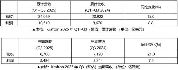 KRAFTON公司今日(11月4日))在投资者关系简报会上公布了2025年第三季度财报。