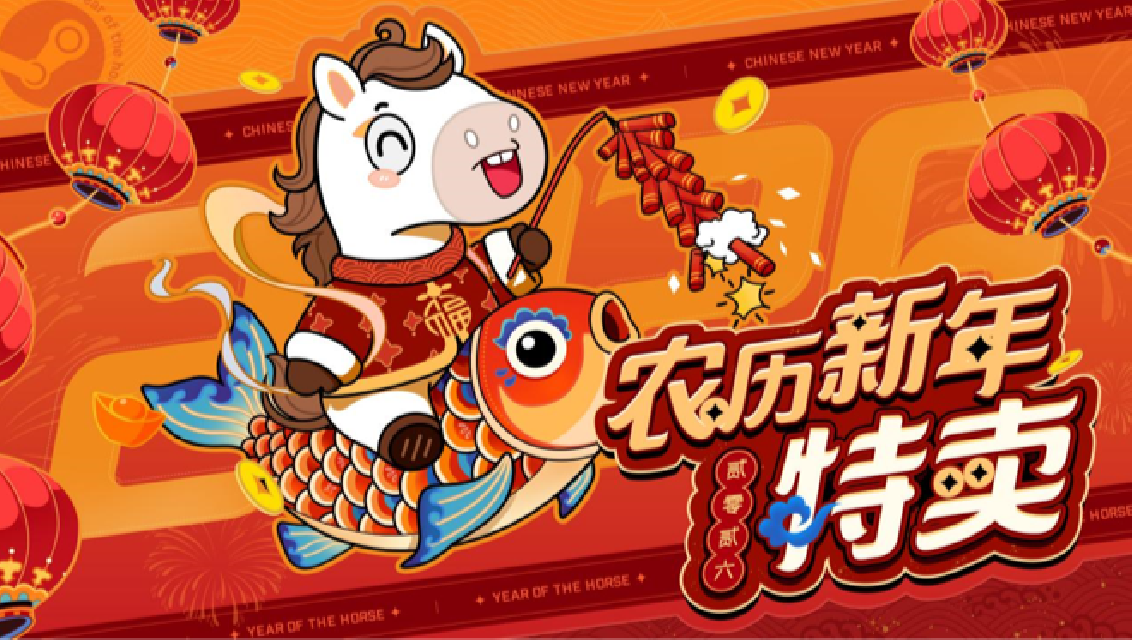 农历新年特卖以中国传统农历新年为主题,通过在线活动专题形式,提供业内游戏厂商展示与推广游戏的舞台。蒸汽平台仍将联合Steam投入大量平台侧和市场侧宣发资源提升农历新年特卖的影响力与曝光量。