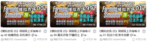 好在经过一年的发展,目前BUG已经被修的差不多了,B站上也有非常详细的教学视频,这里推荐一位Up主:毒蛇弓长-GameGuide,他的模拟农场务农系列非常详细,不论新老玩家都可以通过合集中的教学快速上手。
