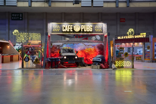 此外,休息区“CAFÉ PUBG”与人气甜品品牌Old Ferry Donut合作推出限定菜单,并结合《BATTLEGROUNDS》世界观设计了小游戏和体验活动,吸引众多粉丝参与。完成打卡任务的玩家,还能获得BATTLEGROUNDS主题的雨伞、抱枕、颈枕、玻璃杯等丰富周边。