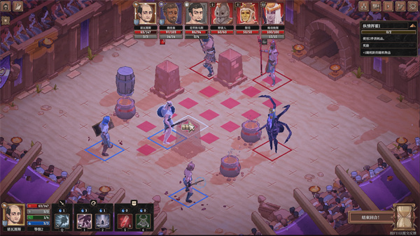 和很多战旗游戏类似,游戏里每个角色每回合的行动和技能释放都会有体力限制,而且两者分别由独立的两个体力条管制。游戏里的角斗士有很多职业,包括敏捷斗士、网斗士、法师、牧师,甚至更离谱的都有,一个合格的队伍里应该兼具近战和远程输出型角色,这样才能保证安全的输出范围。