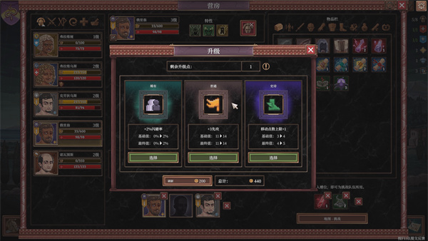 培养一支自己的队伍需要一定的运气,因为角色升级后的技能点是要在三个随机抽到的天赋技能中选择一个,这个就属于肉鸽元素的范畴了,优点是随机性很强,缺点是很难凑到单一属性特别强的角色。不过可以用SL大法重刷天赋,虽然刷到想要的还是有难度,不过每个技能点都用在史诗等级的技能上还是有保障的。