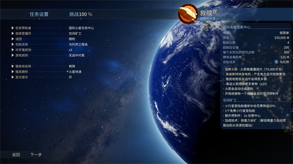 不同的赞助者开局会带来不同的优势与劣势,但我这里建议所有新手都“老实”一点,不要想着挑战高难度,默认宇航局开局才是最好的选择,等熟练后再考虑挑战其他派系的内容,并且如果实在不熟悉游戏流程的话,本作还提供了相对非常详尽的新手教程与创意模式以供试错。