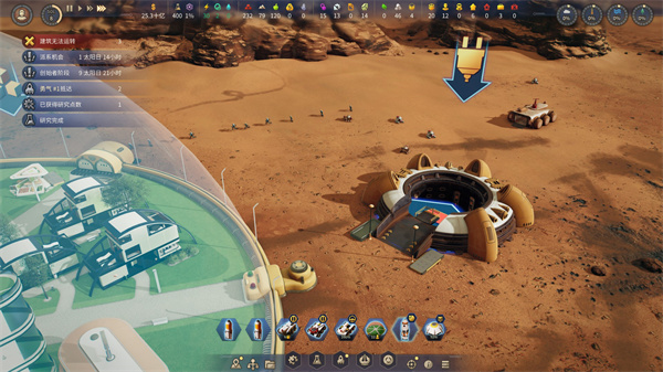 玩家来到火星起初只有几个无人机与少量资源,必须迅速建立早期的生产基地,才能让游戏得以继续,因为随着时间的推移,每一个单位都有几率损毁,早期那点家产真是不够败的。