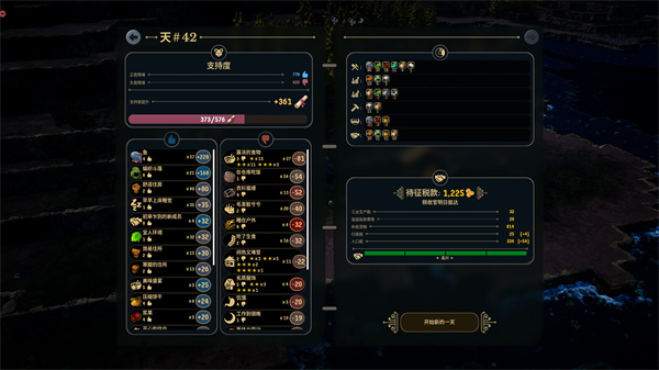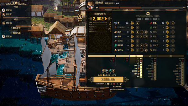 猫鼠关系平衡管理方面,上文提到玩家扮演的角色是处于统治者和受压迫者中间的位置。猫大人定期会有一些物资补给送来岛屿,补给有不同价格的选择,接收补给后就负债,会有税收船前来收税。