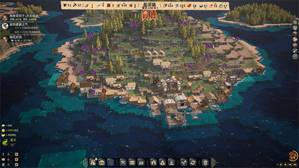游戏开局默认的地图是几座四面环海的岛屿,玩家选择一个中心岛屿做建设。