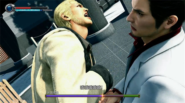 这部分内容不仅完善了真岛这个角色的动机与行动逻辑,更以其独特的疯癫风格提供了有别于桐生线的游戏乐趣。特别是在后续故事中真岛有了自己的冒险故事之后,重新把目光放在东城会大变的节点上,在桐生背负了故事中沉重和责任的灰色光影时,真岛则展现了其中最黑暗、最疯狂,亦是最反差的纯粹暗面。