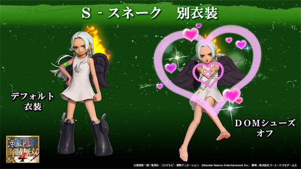 珠宝.波妮、S-蛇、路基 ─CP0─等人即将在追加DLC角色包第7弹"未来岛蛋头包"中参战,并收录了3种追加角色的服装。