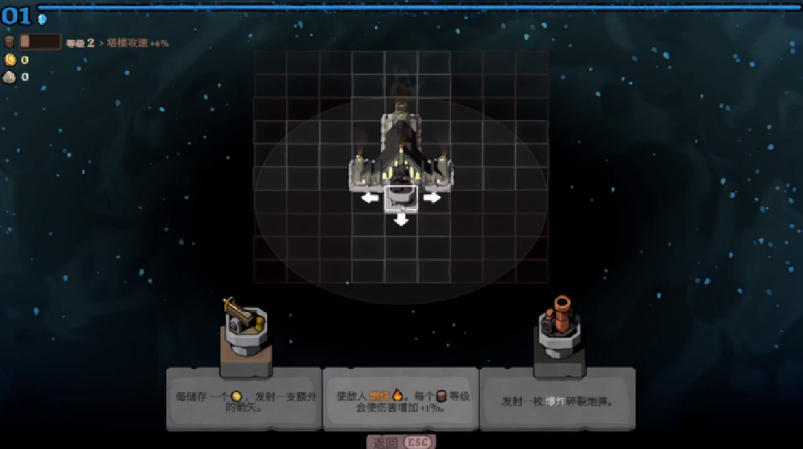 初始的塔楼只有一个单一的攻击手段,随着经验的获取达到进化就可以从几个进化选项中选择一个塔楼安装到主塔的边上。
