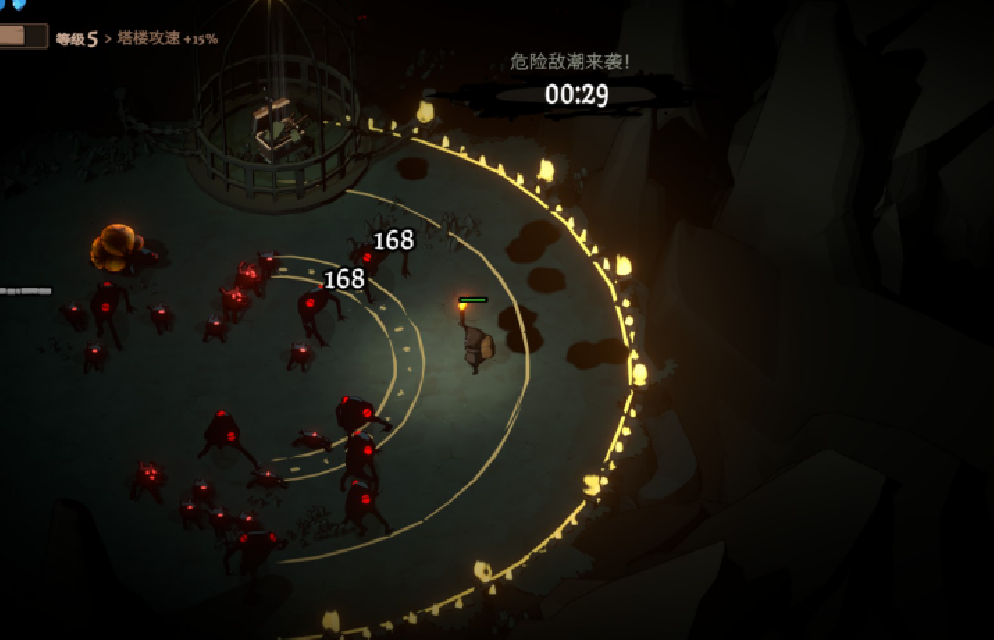 一种是塔楼是按照时间往目的地前进,如果在前进的路上有障碍物则会影响塔楼的前进,这时候就会有怪物冲上来造成伤害,如果是玩家受到伤害或阵亡其实影响不大,但如果是塔楼生命值清零就只能进行下一局游戏。