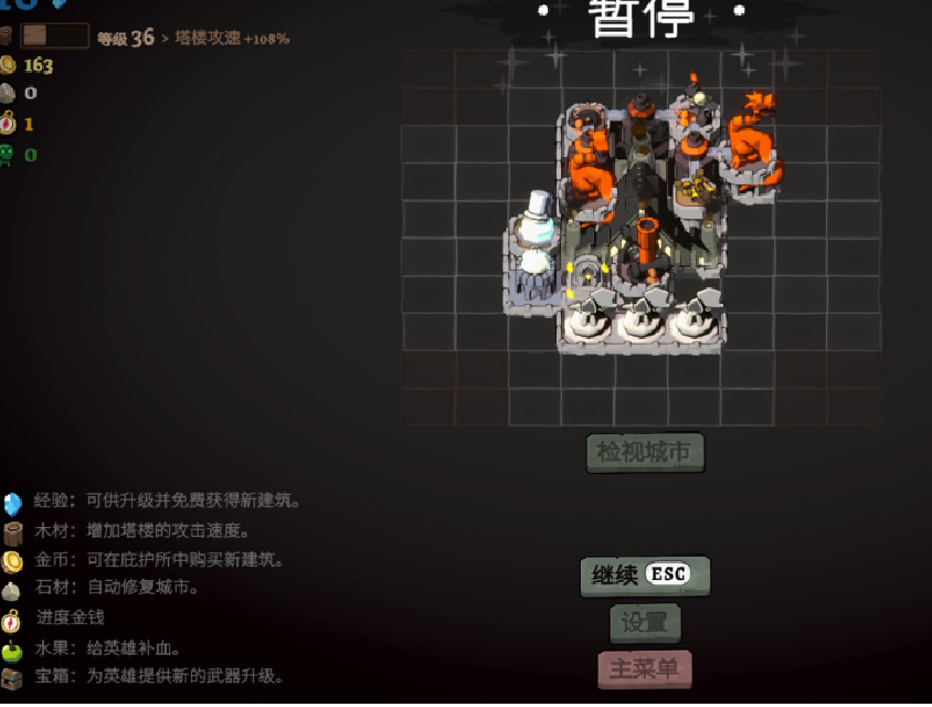 塔楼分为进攻型和功能型,进攻的塔楼可最多升级两次,会获得一定的提升,辅助的塔楼则并不能进行升级,但是可以连携产生效果,几个连着一起放的资源塔可以提升效率,还有增加伤害,加快砍伐的塔楼都很有趣。