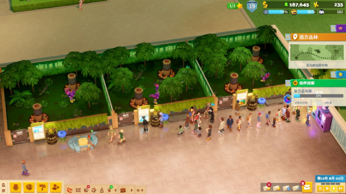 本次DLC是以动物园+博物馆结合的玩法,说是博物馆其实和动物园无异,主要以动物展览为主的经营管理,包含昆虫、鸟类、爬行类、哺乳类这四大类型,超过40种野生动物。