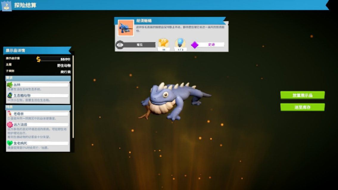 所以在《百兽博物馆》DLC中,玩法核心主要聚焦于饲养与观察动物,玩家可以通过照料和观察获取动物知识,外出地图探险带回更高品质的个体,也可以选择领养或放生动物获取保护点数,这一循环玩法基本贯彻整体DLC的体验内容。