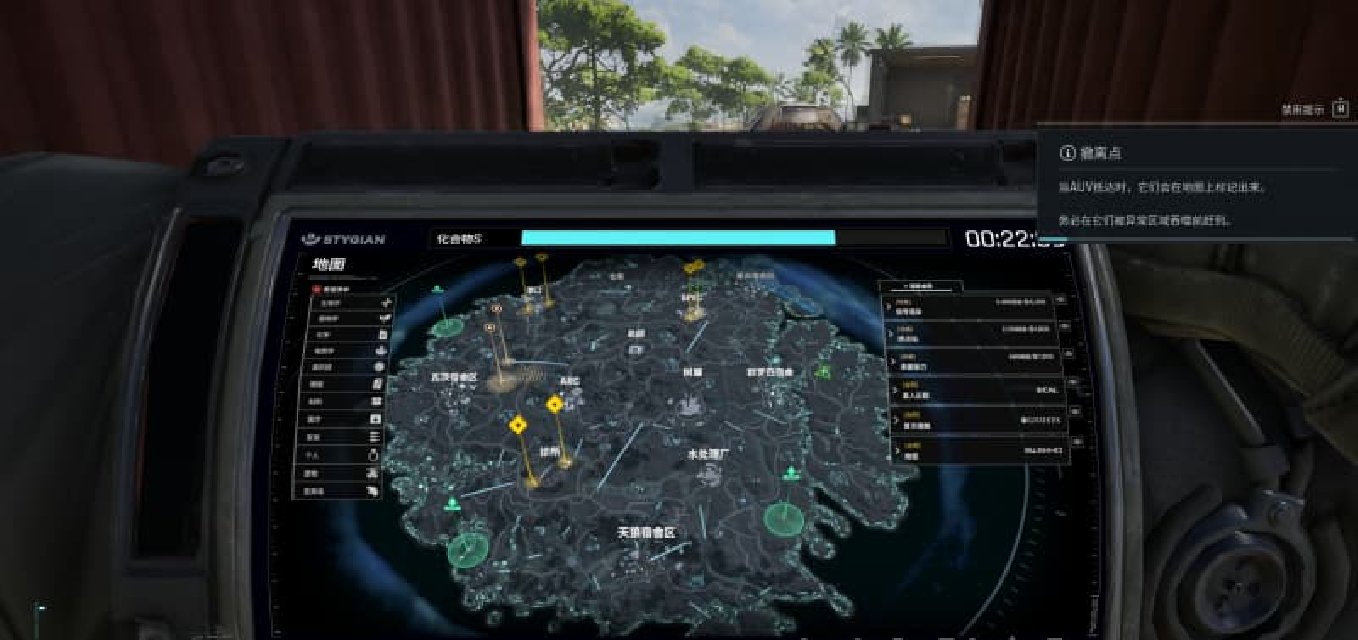 游戏的地图其实很大,初期都是在外围登陆,圆形的地图可以选择降落的区域,但每个区域有限定人数,满了就得选择其他地方,之后如果有道具了可以直接降落在中心区域。越往中心的材料道具越值钱,但风险与收益并存,中心区域遇敌的概率增加,各种AI生物也更强。随着毒圈的收缩,可撤离点越来越少,直至抢夺最后一个。游戏的撤离点有两种,一种是会随机刷在有水区域的逃生舱,这种撤离很快;另一种是黑洞形式的撤离点,开启后需要一定时间才能撤离,而且这段时间附近的人能看到黑洞被激活,也有可能会有老六进行蹲点。