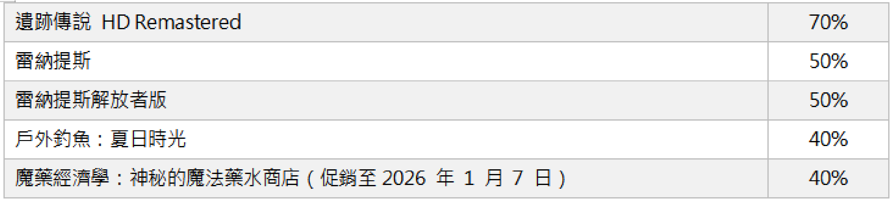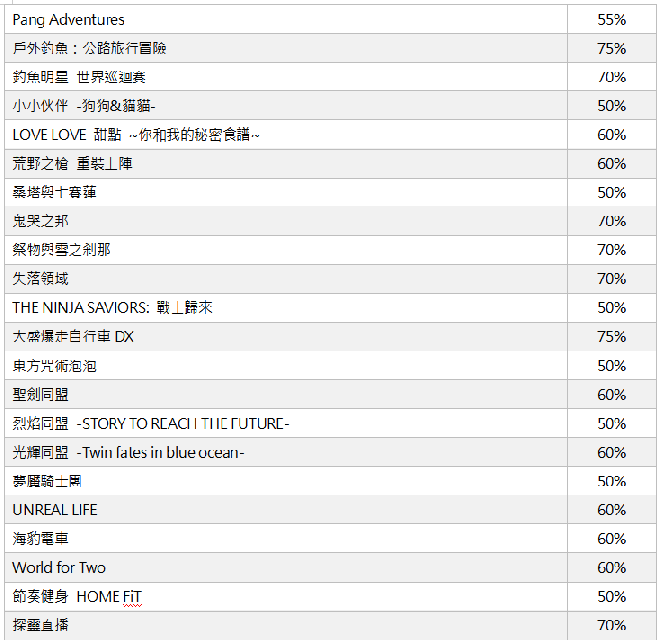 ※ 部分游戏促销期间不一样,详情请见促销游戏项目表。