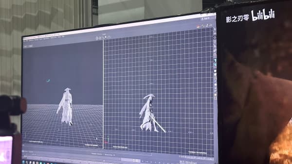 在现场笔者还有幸看到了一段动捕拍摄的过程。一开始动捕演员先是在平地上试了几次架势,随后在工作人员以及两旁威亚的帮助下一次次吊得更高,动作做得也更完全;直到最后一次,他手提长剑道具,从地上一跃而起,在空中来了个360度空翻随后稳稳落地,惹得现场一阵喝彩。而这一段的数据立刻被电脑程序收集记录下来,以备后续的进一步优化。