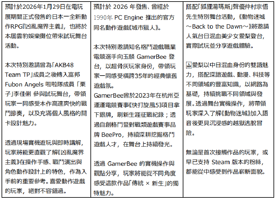 云豹娱乐股份有限公司(董事长兼社长︓陈云云)今日宣布,将以更强大的阵容参加「2026 台北国