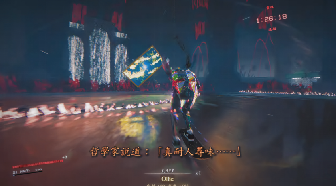 很难给这个游戏进行一个定义和总结,作为一个台词不多,精于滑板操作的,不折不扣的滑板动作游戏。这个游戏给我留下更多印象的,还是它诗化解读空间下,超现实主义折射出的“意志”。