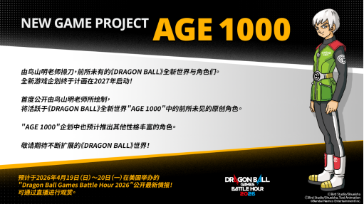 【2026年01月26日】万代南梦宫娱乐已于2026年1月25日举行的"Dragon Ball Genkidamatsuri"活动中,公开了《DRAGON BALL》最新游戏企划"AGE 1000"。
