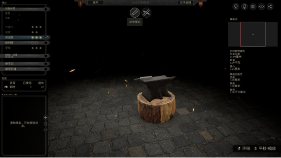 游戏的核心玩法铸剑系统,游戏给玩家们提供了一个自由刀刃塑形与精细的模块化锻造系统。游戏中的铸剑系统主要分为剑身、剑柄这两个部分,以这两部分为主细分了不少内容,比如长度、韧性、强度、锋利度等等,这些玩家都能够进行调整,不过也因为比较自由和精细,不是能够很好的协调各个部件之间的联系。