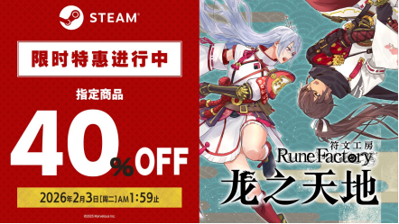 Marvelous Inc. 宣布,《符文工房》系列最新作《符文工房 龙之天地》现正于Steam®平台举办限时6折特卖活动,带来期间限定超值优惠。