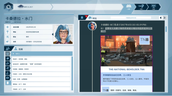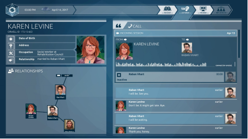 在 Orwell: Keeping an Eye On You 中,玩家将扮演一名政府调查员,通过监控公民的私人聊天记录、电子邮件、社交媒体活动与个人数据来执行任务。玩家需要决定哪些信息应被上报给当局,这些选择将直接影响一场反恐调查的走向,以及相关人物的命运。游戏从不告诉你什么是“正确答案”,只会让你直面每一个决定所带来的后果。