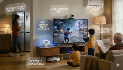 家庭健康守望员:通过传感分析,可关注长者起居规律、提醒用药,或感知成员情绪压力并播放舒缓音乐。所有涉及个人状态的数据均在本地处理。