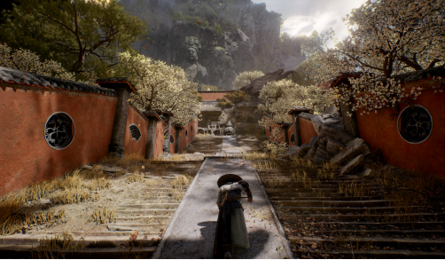 游戏目前不论是移动,登梯,还是砍杀的反馈感都非常一般,时有飘忽感;尤其是壁面轻功和在台阶上奔跑时,确认感非常一般。老离对此的回应则是,团队中有一名员工全职针对性优化,期望游戏发布时这一点能有长足改进吧。