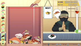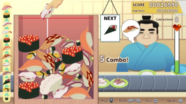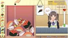 这款游戏并不是简单地让寿司越变越大。完成的寿司会被自动放上传送带,送到在吧台等待的客人面前。