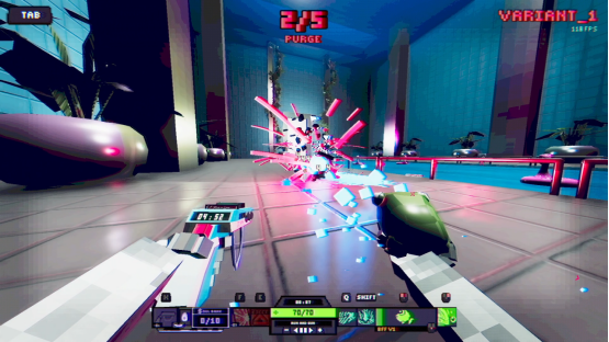 游戏风格类似之前小有名气的复古动作射击游戏《ULTRAKILL》,玩家在类后室的超阈限空间内,不断变换跳跃,击杀那些畸形可怕的怪物。游戏将rogue要素和战斗体验结合的相当好,有多达13种武器和10种辅助道具随机搭配,每种武器也有独特的攻击方式和技能,在局内通过buff道具进行累加成长,最终会让玩家摸索出一条自己的爽快战斗方式。