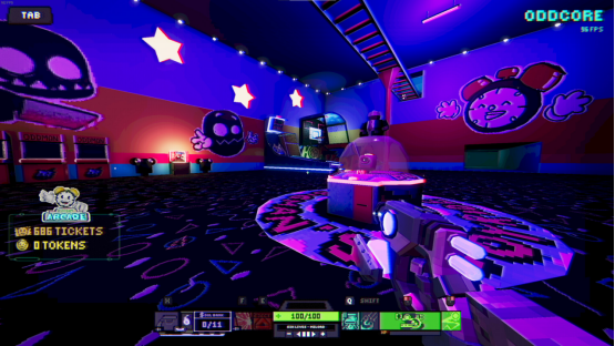 除此外本作最具特色的一点就是贯彻了80年代复古娱乐的精神,开发者在中立安全区内搭建了一整个复古游戏厅,你可以在这里体验经典的小游戏例如:投篮机、推币机、老虎机等等,获得的兑奖彩券可以购买解锁一些皮肤、武器、小宠物等等。同时为具有挑战精神的玩家提供了全球排行榜,玩游戏的谁不想冲高分呢?在这里你可以查看名列前茅的玩家排行,也是牌面十足。