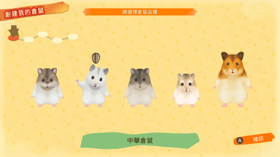 玩家可从包含小露宝仓鼠在内的 5 种仓鼠品种中,自由搭配毛色、眼睛颜色与配件,创造属于自己的分身仓鼠「我的仓鼠」。游戏中也将登场牛顿仓鼠、黑腹仓鼠等稀有品种。