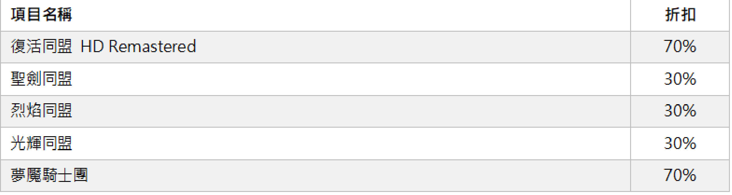 ※ 部分游戏促销期间不一样,详情请见促销游戏项目表。