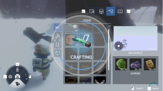 但游戏在这方面的操作有些过于生硬,我们首先需要进行扫描,学习物品的制作方法,然后用背包内的物资制造物品,紧接着我们需要在轮盘中选定我们需要用的物品,最后再使用这个物品。这一点我们后面再说。