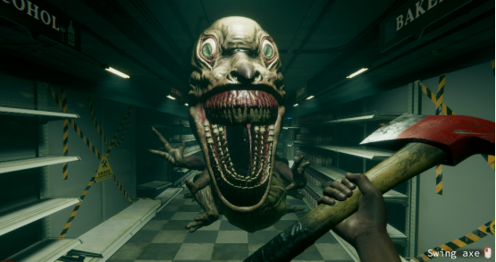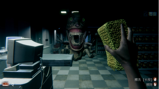 作为一款恐怖游戏,那自然离不开谈及采取何种手法来吓唬玩家了,在本作中,制作组采取了最原始、也是最老道Jump Scare手法,就在你聚精会神的在为超市进行清洁工作时,突然冒出的人脸、以及撞死在玻璃上的乌鸦,配上短促而又刺耳的音效,带来的刺激效果依旧有效且又直接。
