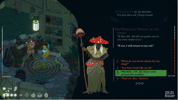 无论是和矮人摔跤、顺走眼前的一切,还是努力不让自己看起来像个彻头彻尾的傻子——都要掷骰决定。但别忘了,在真正的桌面 RPG 风格中,失败往往会带来更有趣的结果。