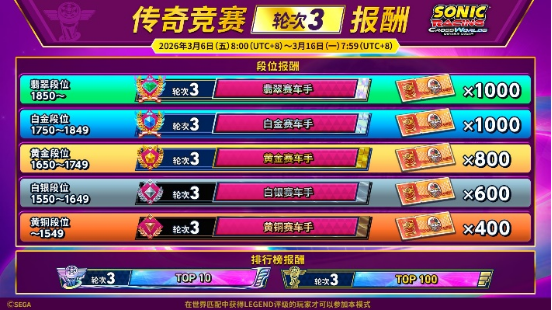 《索尼克赛车 交叉世界》顶尖赛车手活动“传奇竞赛 轮次3”即将开始!