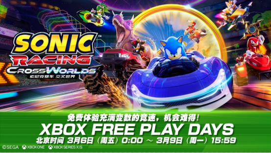 《索尼克赛车 交叉世界》确定将加入Xbox的限期免费游玩权益“免费游戏日”。“免费游戏日”是仅限Xbox Game Pass Ultimate、Premium、Essential会员享受的特殊权益。活动时间之内会员可免费体验《索尼克赛车 交叉世界》正式版。此外,若玩家在免费游戏日之后购买本作,可从免费体验的保存数据开始继续游玩。