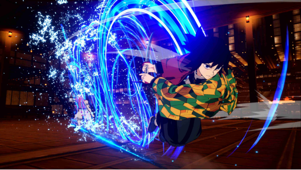 《鬼灭之刃 火之神血风谭》是以2019年4月播出的动画《鬼灭之刃》为基础制作的对战动作游戏。由Aniplex负责制作和日本国内发行(※1)、CyberConnect2股份有限公司担任开发、SEGA世嘉负责国际发行。此游戏已于2021年10月14日发售。该作通过免费更新追加了可操作角色,还陆续发售了5个付费DLC“游郭篇”角色包,作为来自“鬼灭之刃”系列的首款家用主机平台游戏收获全世界玩家的好评,全球累计销量(※2)已突破400万份。