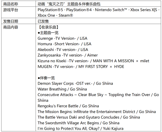 《动画“鬼灭之刃”主题曲&伴奏乐曲包》商品概要
