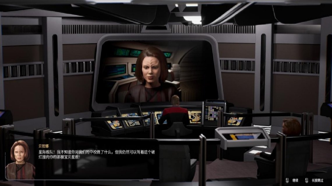 而在剧情部分,本作虽然复刻了电视剧剧情,但是没有参考电视剧镜头来制作过场动画,而是将所有剧情部分都改成了文字游戏,唯一的3D展示还是驾驶室的船员站在各自操作台之后站桩,这也导致游戏开场对航海家号遭遇事故这段有飞船大规模损毁和人员伤亡的剧情的复刻效果有一种情景喜剧一般的荒诞感。